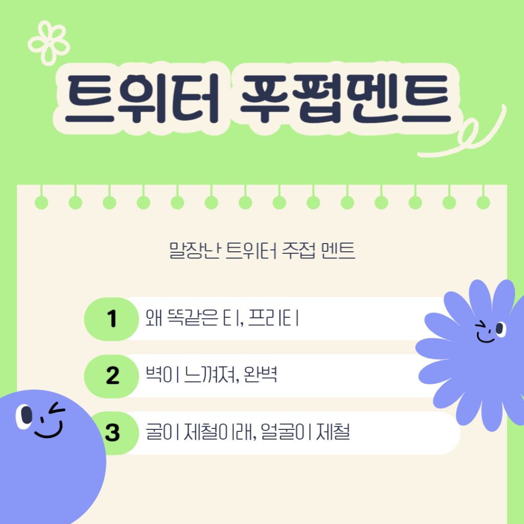 트위터는 다양한 유저가 활동하고 있는 SNS인 만큼 매일매일 새로운 밈과 트윗들이 유행하기 시작하는데요. 그 중에서도 아이돌 덕질에 사용할 수 있는 주접 멘트를 몇가지 소개해드리겠습니다!