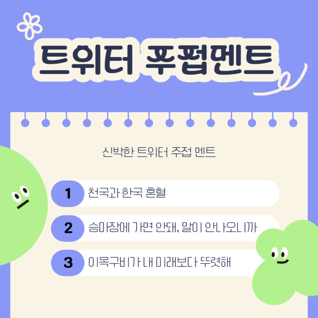 안녕하세요, 기록하는 마케터 하니쑤입니다. 이번 글에서는 트위터 주접멘트 모음에 관한 내용을 다룰텐데요.
